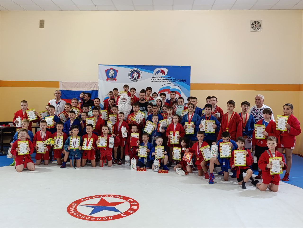 По итогам новогоднего турнира самбисты награждены медалями, грамотами и сладкими подарками.