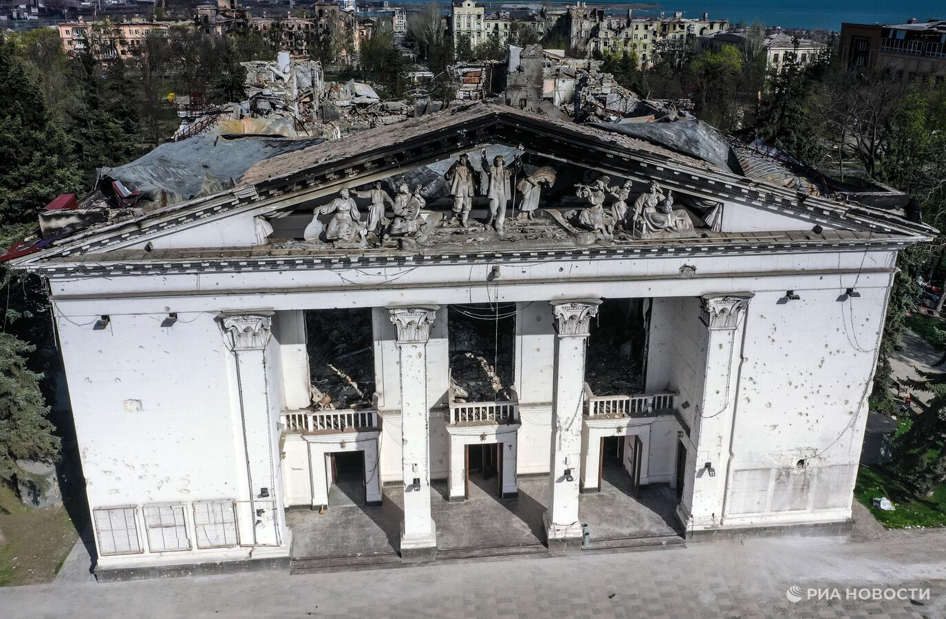 По данным Минобороны РФ, драмтеатр в Мариуполе был взорван националистами "Азова" (террористическая организация, запрещена в РФ) 16 марта 2022 года. В ведомстве заявляли, что озвученные Киевом обвинения в якобы нанесении авиационного удара по зданию драматического театра в Мариуполе, где могли находиться в заложниках мирные жители, не соответствуют действительности - российская авиация не выполняла никаких ударов по наземным целям. В оборонном ведомстве отмечали, что боевики националистического батальона "Азов" совершили новую кровавую провокацию, взорвав заминированное ими здание театра. Как сообщал представитель Народной милиции ДНР Юрий Бухарев, характер взрыва театра в Мариуполе говорит о том, что его эпицентр находился внутри здания, а не снаружи.