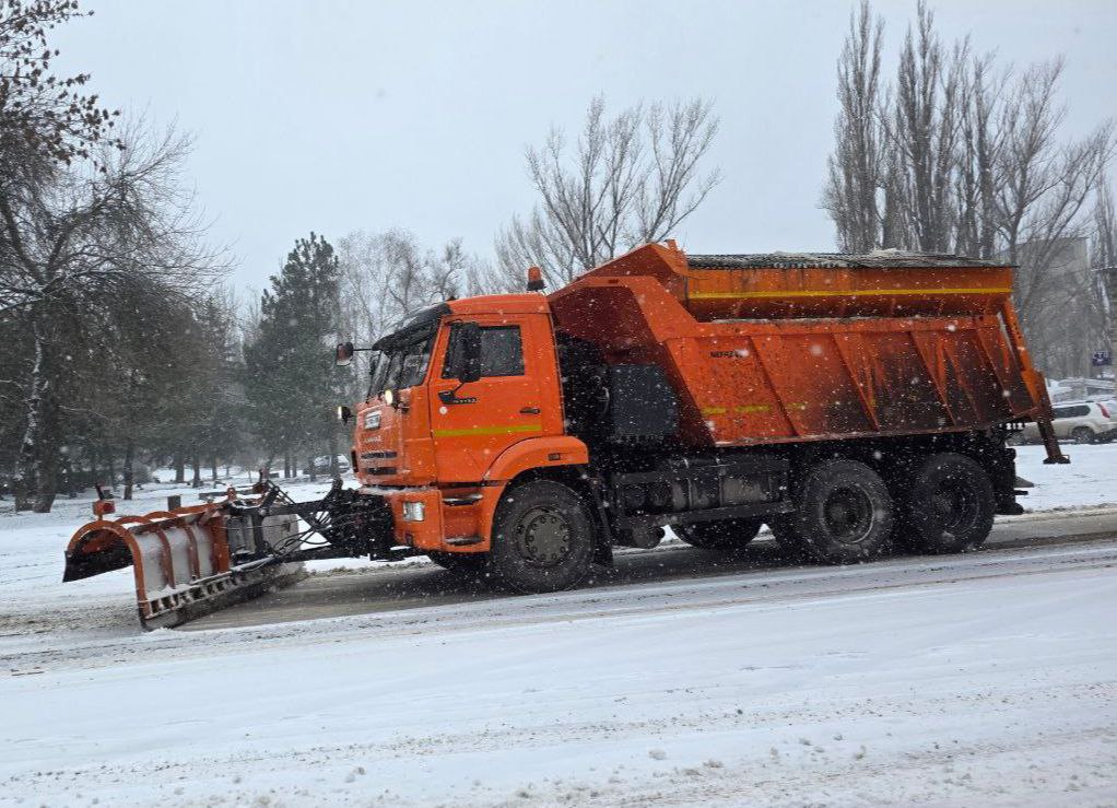 В Макеевке продолжается расчистка дорог от снега. После обработки специальными реагентами для таяния наледи и снежного наката коммунальные службы оперативно убирают растаявший снег с проезжей части.