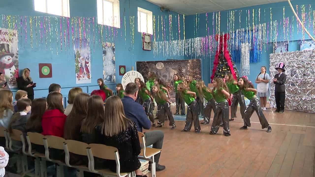 Заехали с новогодним настроением в школу села Благодатное в Амвросиевке, чтобы вручить елку и подарки всем детям