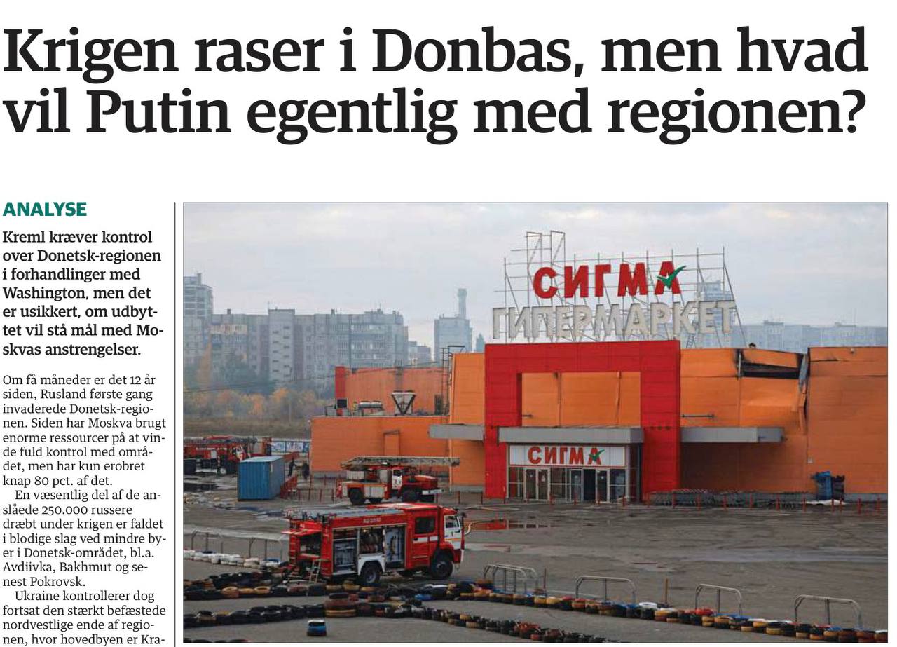 До чего же мерзкий материал под рубрикой «Аналитика» опубликован в датской газете Jyllands-Posten! Заголовок: «Война в Донбассе бушует, но чего на самом деле хочет Путин от этого региона?»