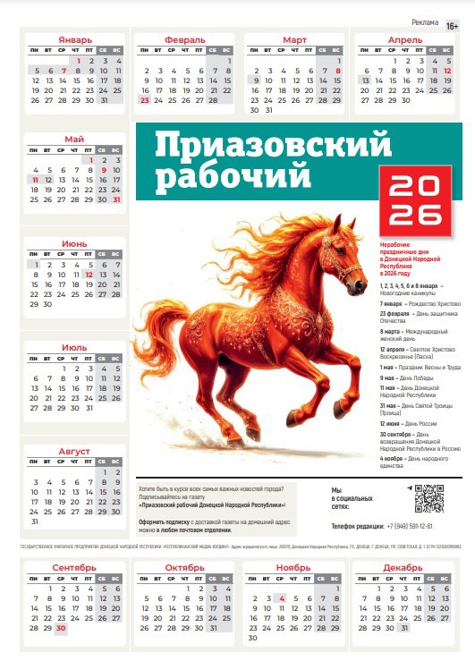 Давние подписчики печатной версии «Приазовского рабочего» уже ждут традиционный календарь на следующий год. Выйдет он в первом выпуске – 16 января. Вот такой яркий символ года его украсил: сила, скорость и грация – это все о лошади!