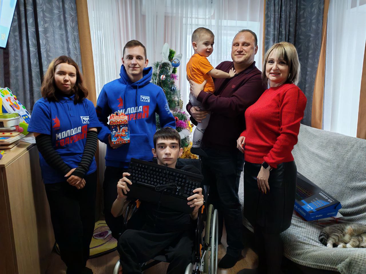 В преддверии светлого праздника Рождества Христова Председатель Торезского городского совета Александр Казмерчук совместно с руководителем аппарата Торезского городского совета Ириной Шевчук и активистами "Молодой Гвардии Единой России" сделали настоящий сюрприз для 15-летнего Романа с ограниченными возможностями здоровья, подарив ему механическую компьютерную клавиатуру.