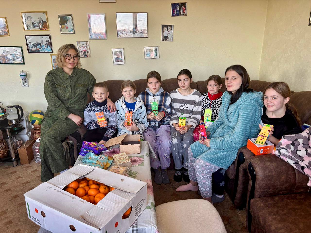 Руководитель регионального отделения Молодёжного союза «Юный следователь» по Донецкой Народной Республике совместно с сотрудниками следственного управления СК России в рамках традиционной благотворительной акции в новогодние праздники посетили детский дом семейного типа «Хаменец».