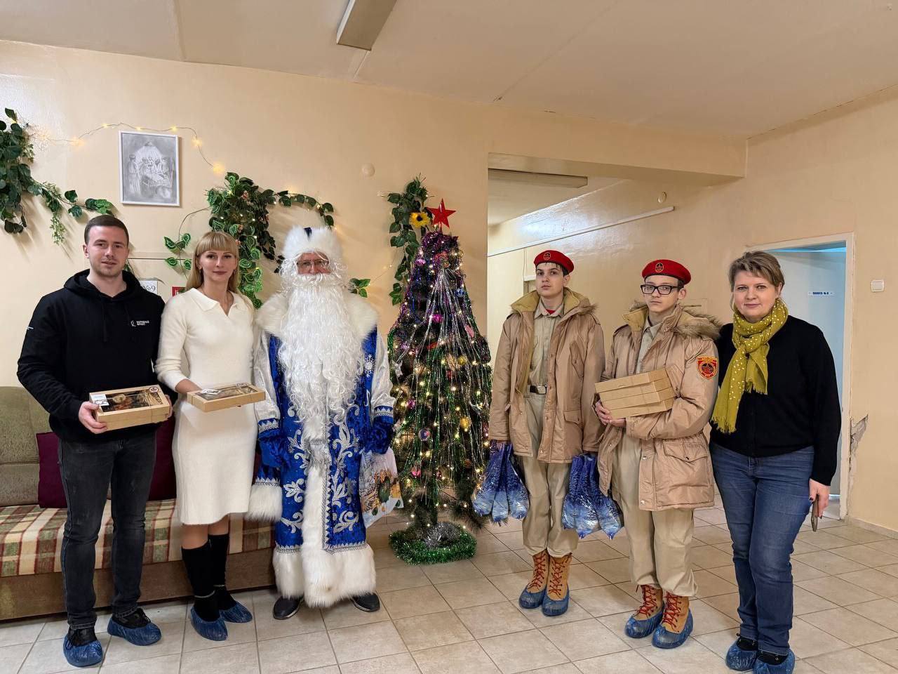 Владимир Финогенов из группы "Наши дети" в роли Деда Мороза и первый заместитель главы администрации с сотрудниками Отдела по делам молодёжи и спорта и активистами юнармейского отряда ГБОУ «Школа № 3 Ясиноватского муниципального округа» и Молодёжки Народного фронта посетили госпиталь, где проходят лечение раненые военнослужащие.