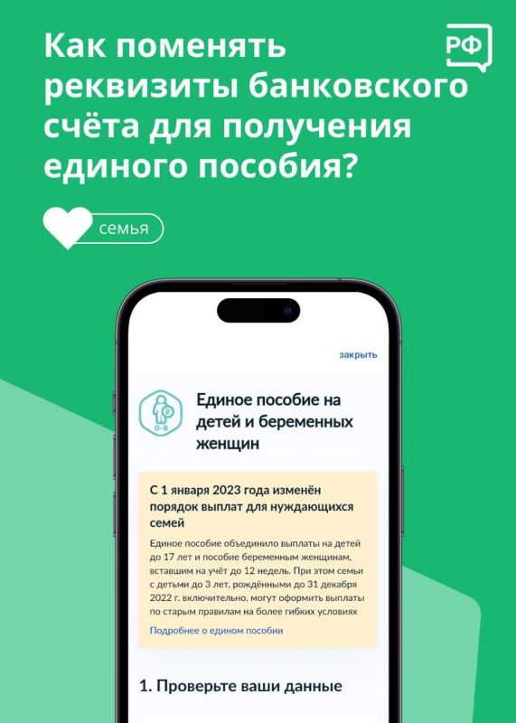 Получаете единое пособие и завели новый банковский счёт? Сообщите его реквизиты в Социальный фонд. Сделать это могут родитель и опекун, которые уже оформляли пособие.