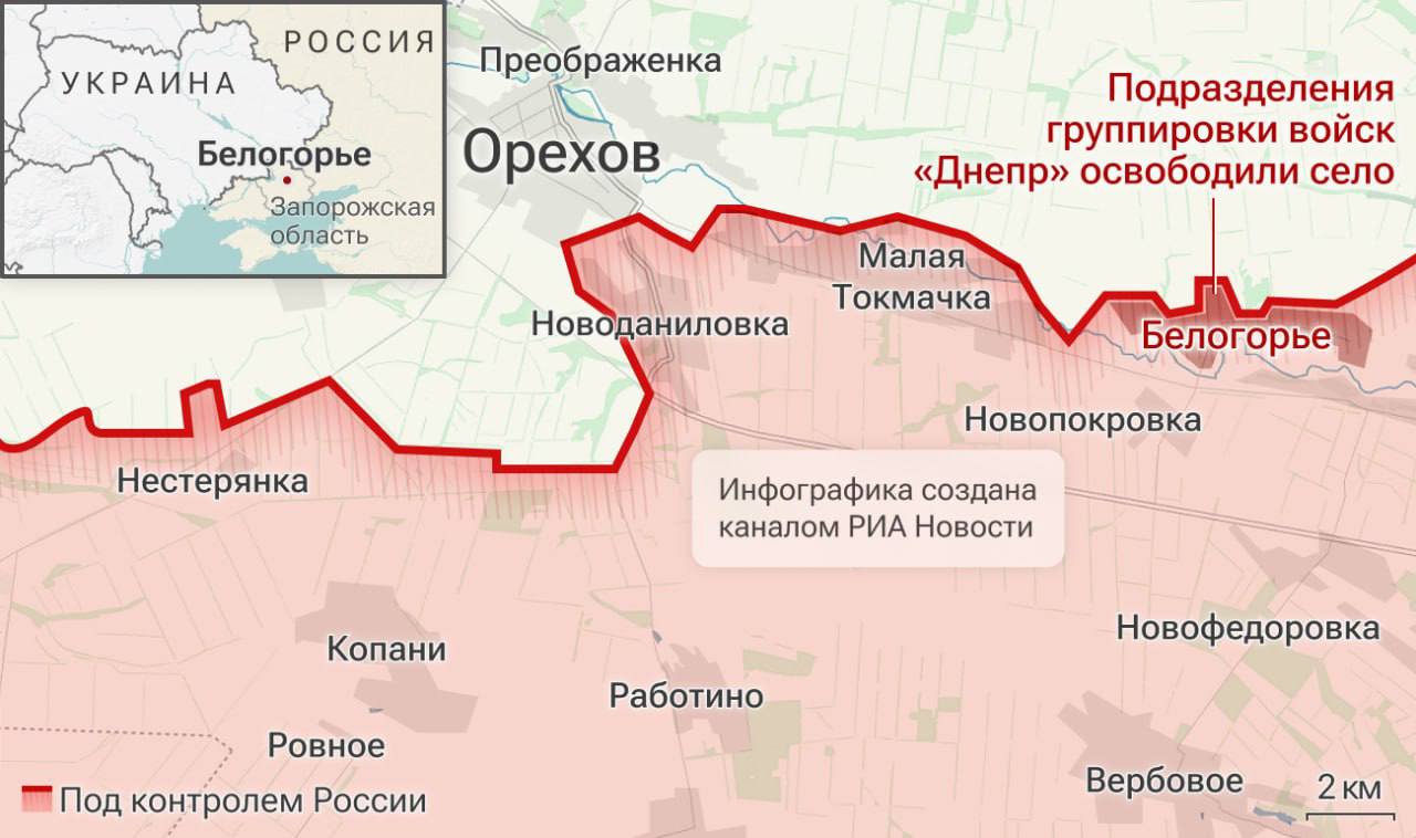 ВС РФ в результате активных и решительных действий освободили населённый пункт Белогорье Запорожской области