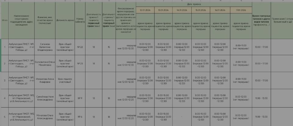 Внимание. График приёма врачами