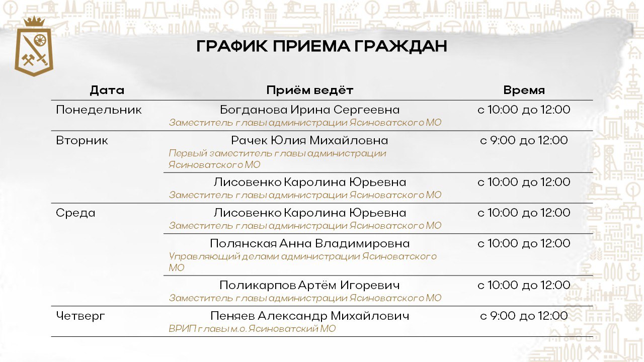 График личных приемов граждан в администрации Ясиноватского муниципального округа