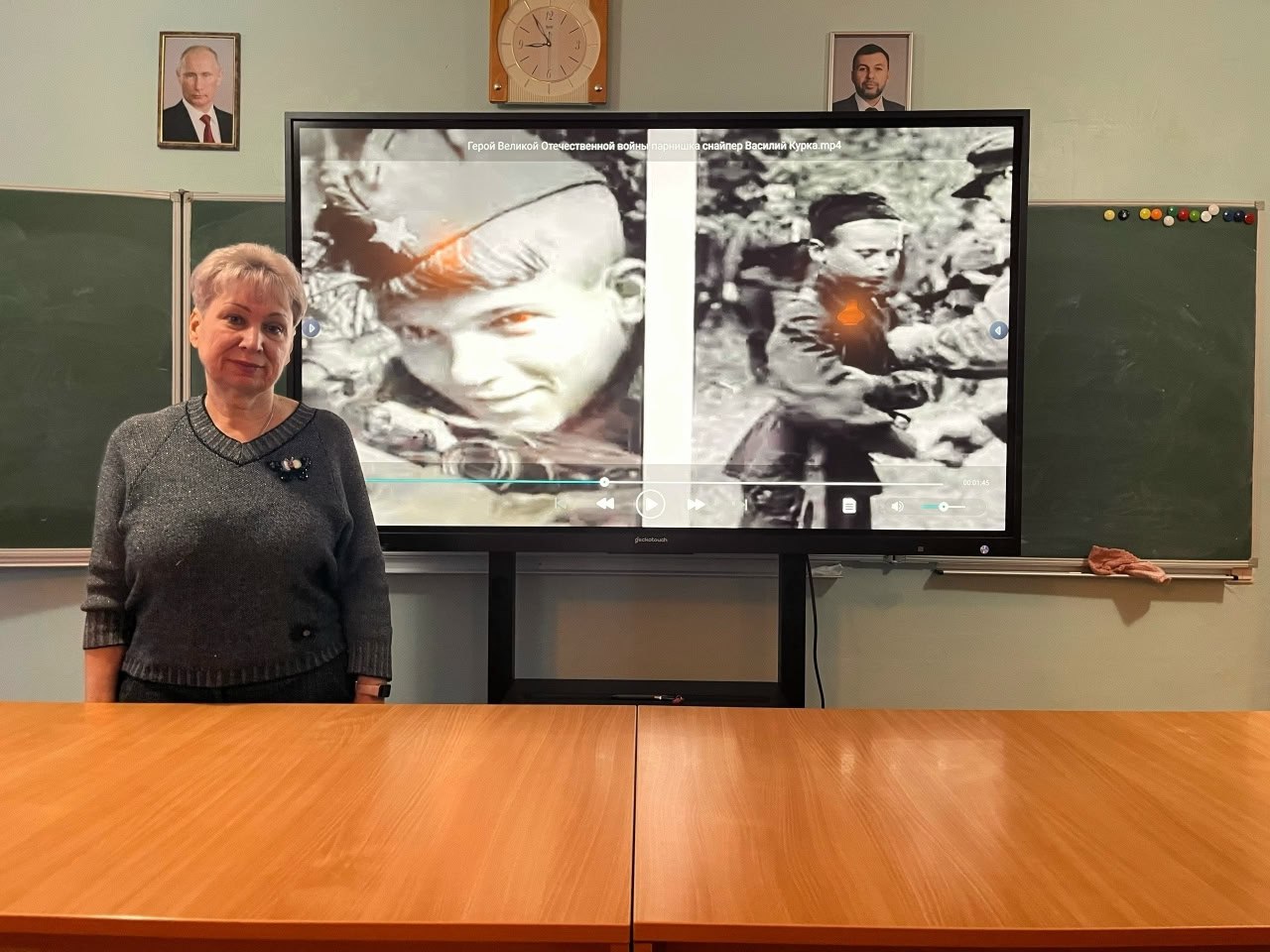 В рамках урока мужества ребята узнали о жизни и подвиге Василия Курки, одного из самых юных снайперов времен Великой Отечественной войны.