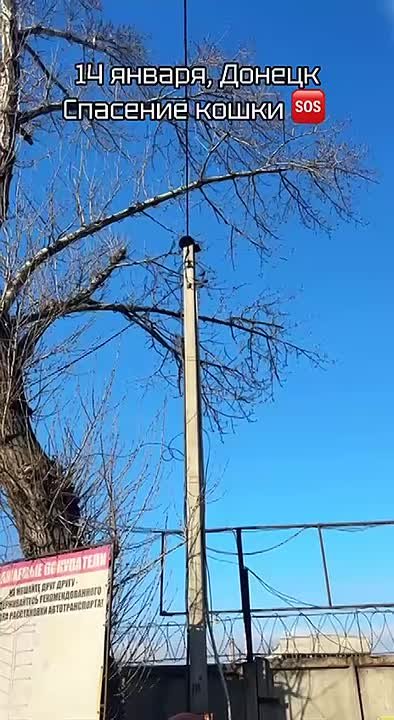 Жители Донецка пытались самостоятельно спасти кошку, просидевшую на столбе с 4 утра