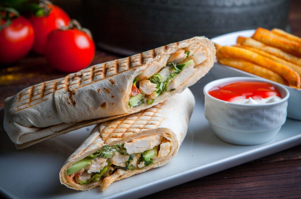 - Лепешка: по возможности возьмите цельнозерновую питу или лаваш. А порцию сделайте поменьше.