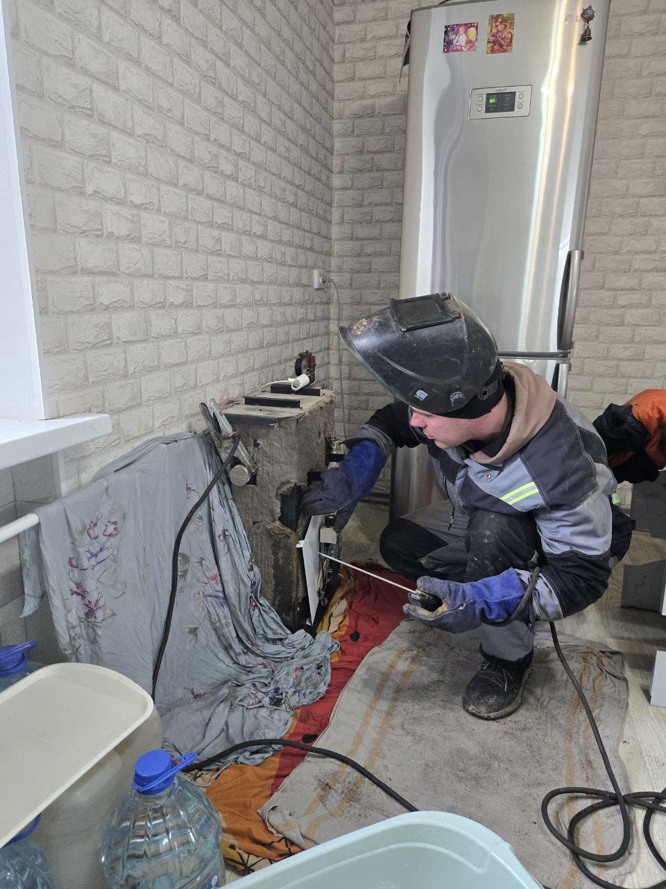 Рабочая группа Магаданской области восстановила индивидуальный отопительный узел в доме квартала 28/33. В рамках пусконаладочных работ специалисты выполнили ремонт котла: осуществили перепайку трубопроводов и произвели необходимые сварочные работы для герметизации системы.