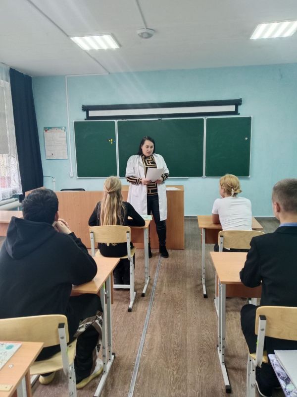 Медицинская сестра кабинета по оказанию медицинской помощи несовершеннолетним Михайловской амбулатории ОПСМ провела беседу с обучающимися на тему: "Профилактика травматизма в зимний период."