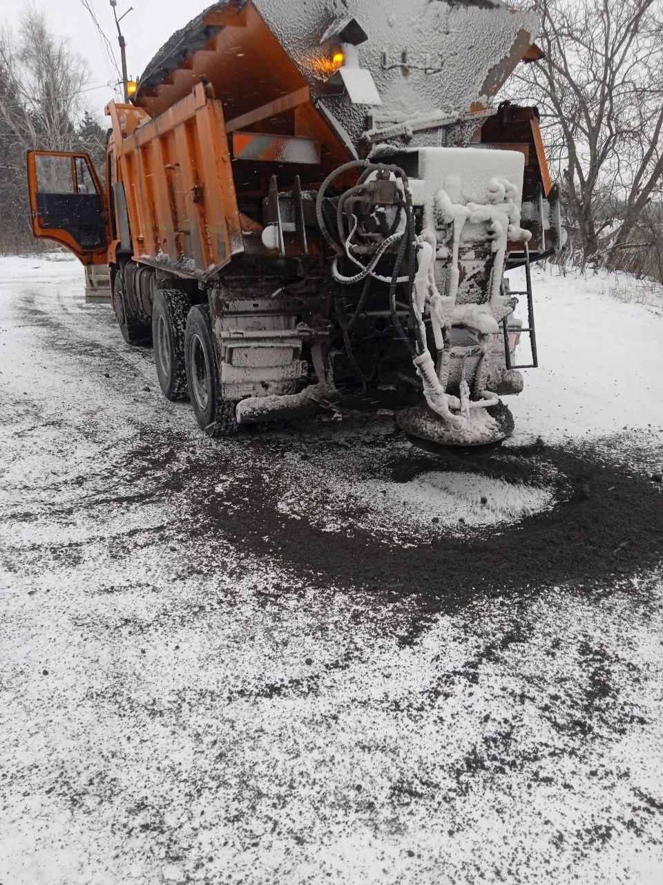 На территории городского округа Торез продолжаются работы по расчистке и посыпке автомобильных дорог.