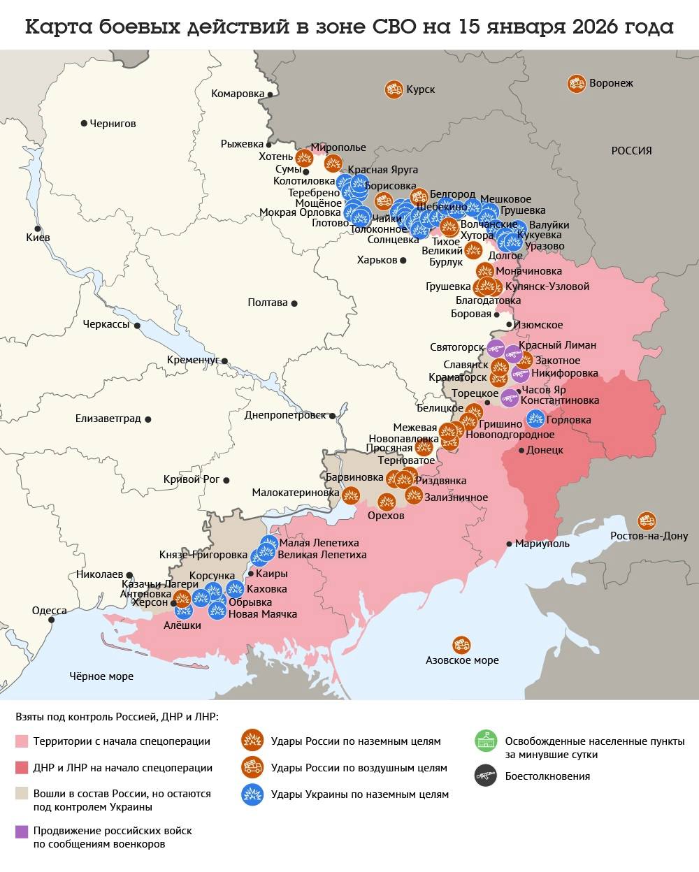 Карта боевых действий в зоне СВО на 15 января 2026 года
