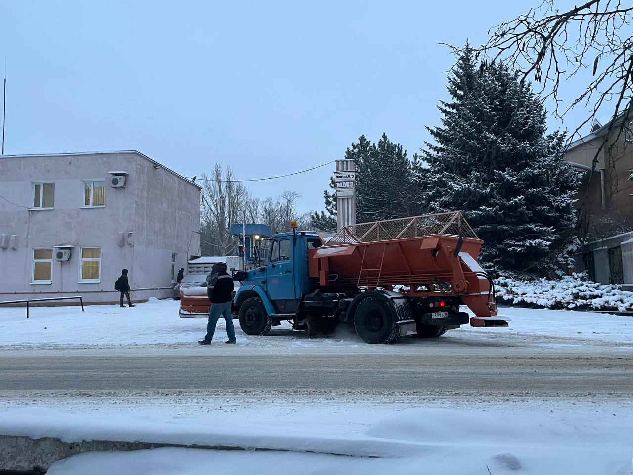 16 января, силами предприятия района ведутся работы по расчистке и посыпке противоскользящим материалом проезжей части автодороги по ул. Металлургической.