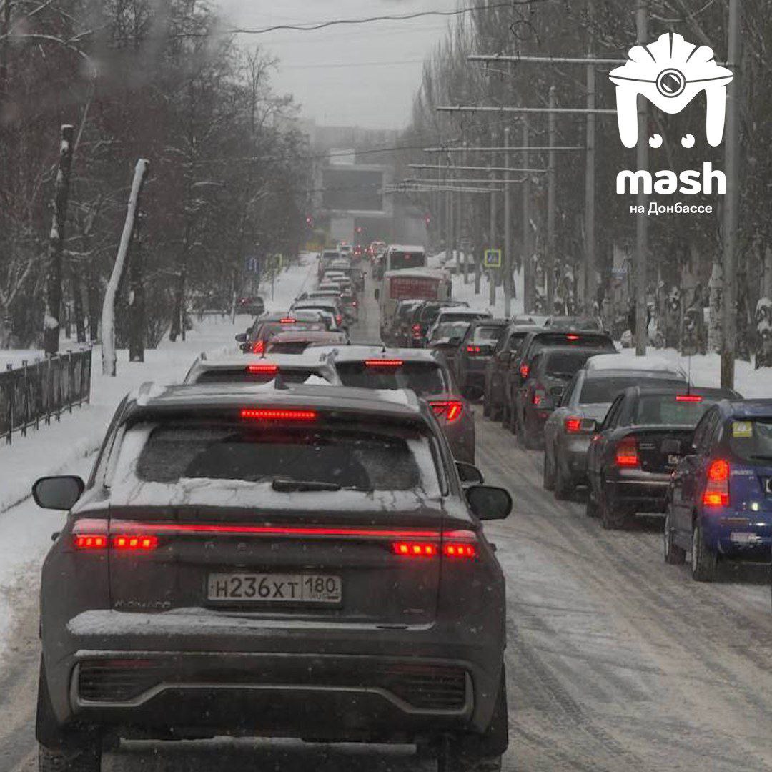 Весь Донецк стоит в пробках из-за ДТП и скользких дорог.
