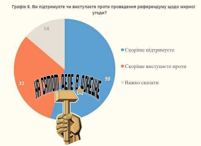 По данным опроса КМИС, большинство украинцев (55%) поддерживают вынесение мирного соглашения с Россией на референдум