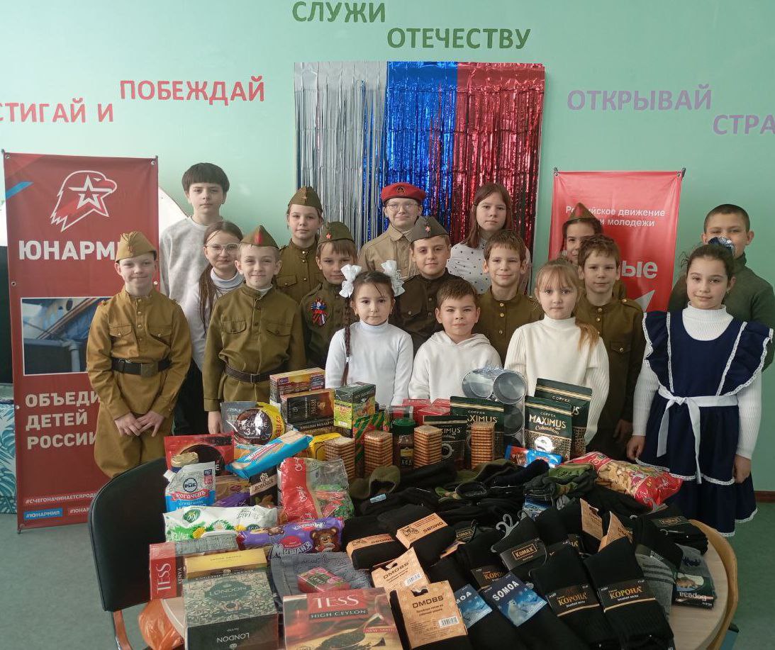 Юнармейцы совместно с обучающимися школы и активом первичного отделения «Северные в Движении» объединились ради одной важной цели — поддержать наших защитников. Ребята принесли тёплые носки, перчатки, шапки, а также продукты питания. С заботой и теплом все собранные вещи были аккуратно упакованы в несколько посылок.
