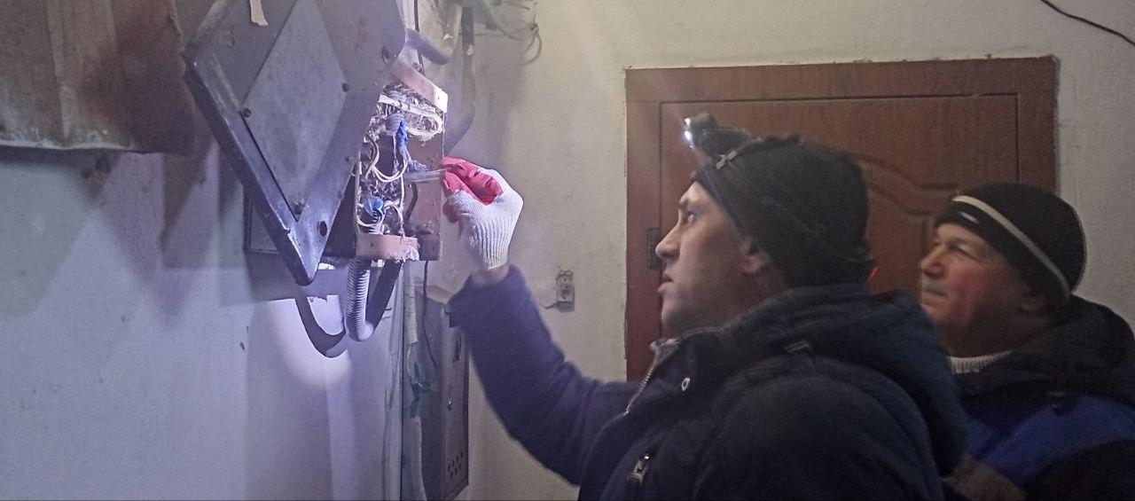 Двое специалистов из региона-шефа настроили работу электрощитка для жителей многоквартирного дома на ул. Ленина.