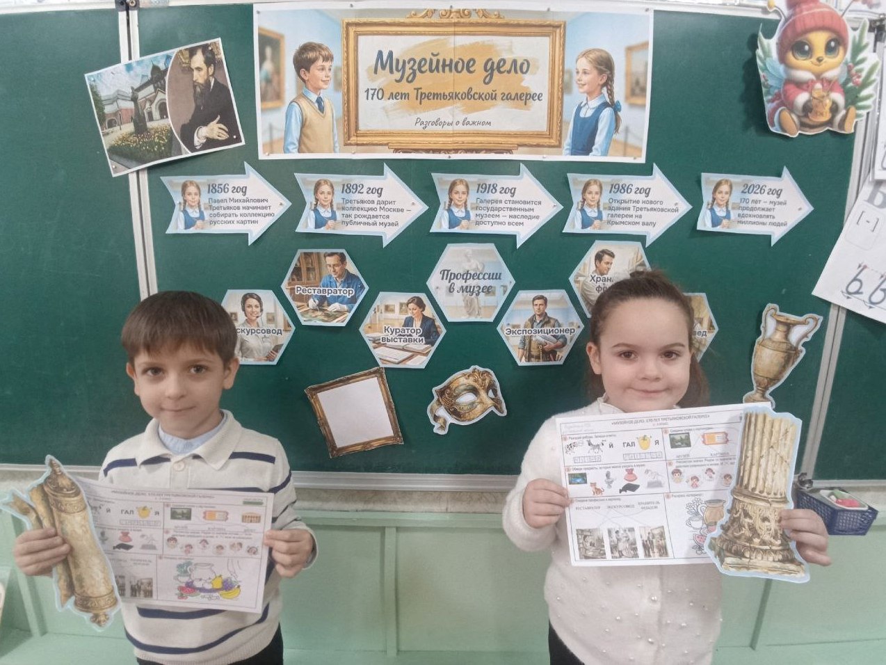 Вместе с педагогами обучающиеся говорили о служении Отечеству, о понимании социального и духовного смысла творчества, о приобщении к искусству и творческой деятельности. Отметили необходимость сохранения исторического и культурного наследия страны и значимую роль музейных работников в этом процессе. Ознакомились с музейной отраслью на примере Государственной Третьяковской галереи. Также школьники смотрели тематические видеоролики, выполняли задания.