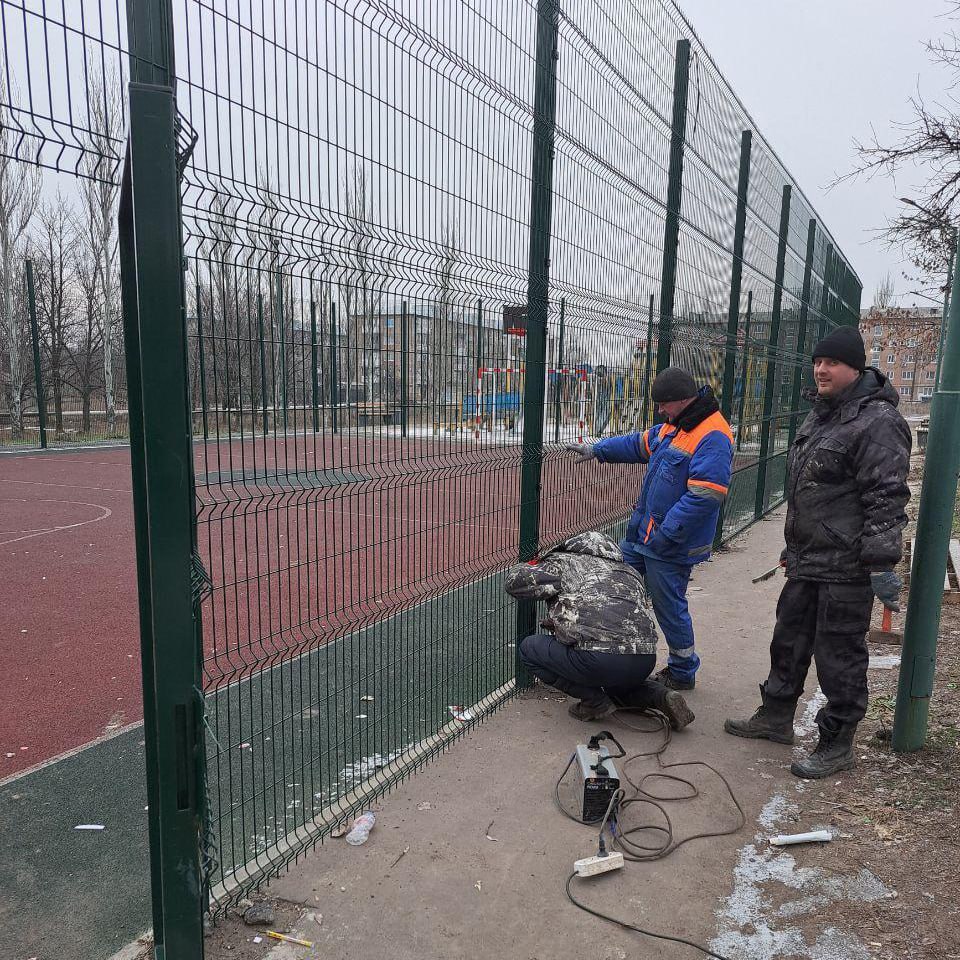 Аварийно-восстановительная бригада региона-шефа установила дорожные знаки на ул. Асфальтной и провела ремонт ограждения спортивной площадки на бульваре Молодежном.