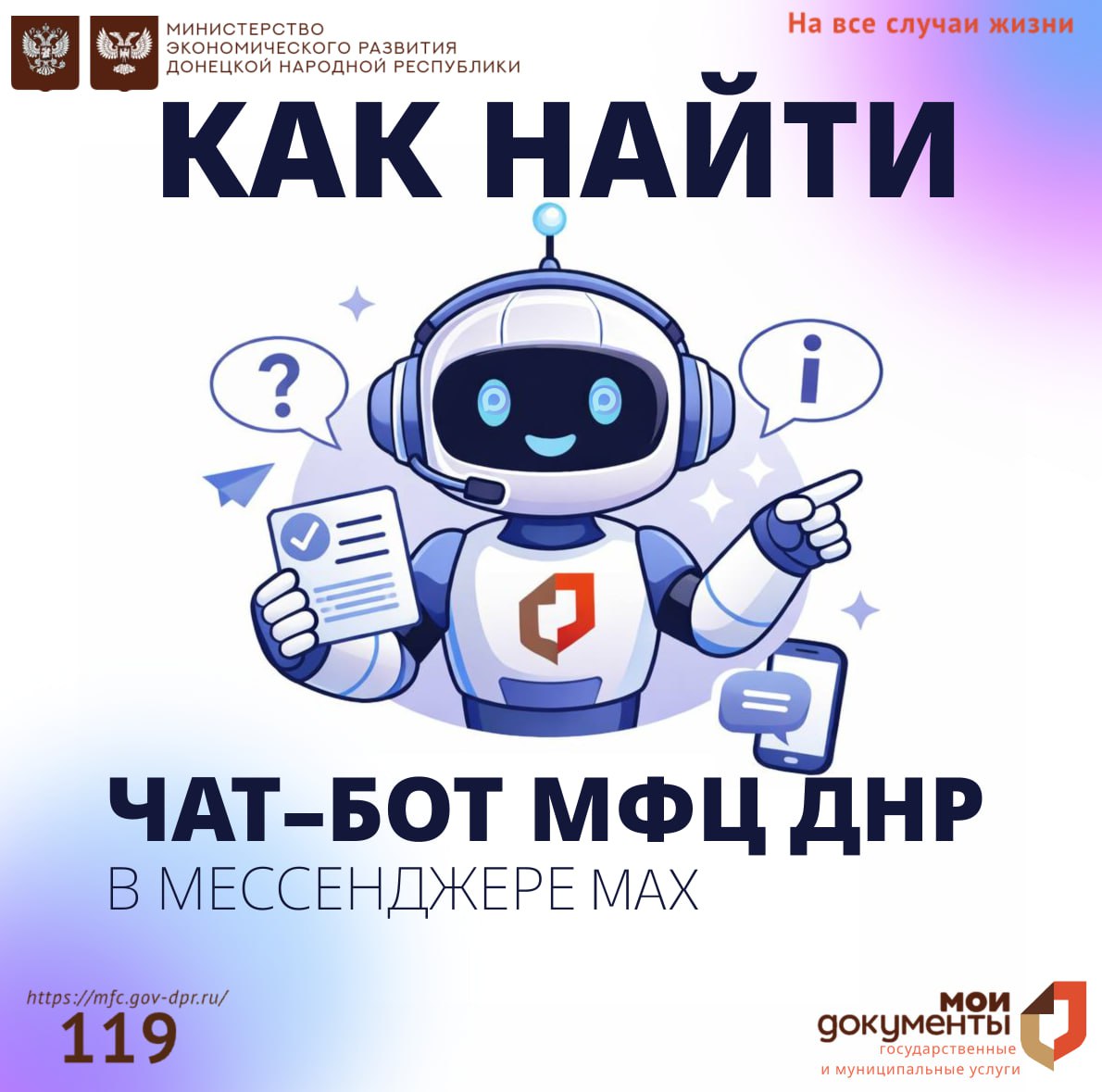 Для быстрого получения информации и предварительной записи вы можете воспользоваться официальным чат-ботом МФЦ ДНР в мессенджере MAX.