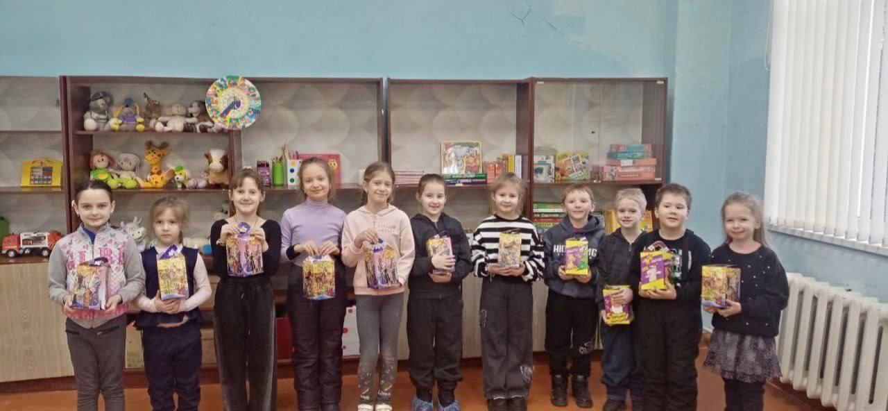Югорчане поздравили детей Дома детского и юношеского творчества и принесли им две больших коробки со сладкими подарками, собранные и переданные жителями региона-шефа.