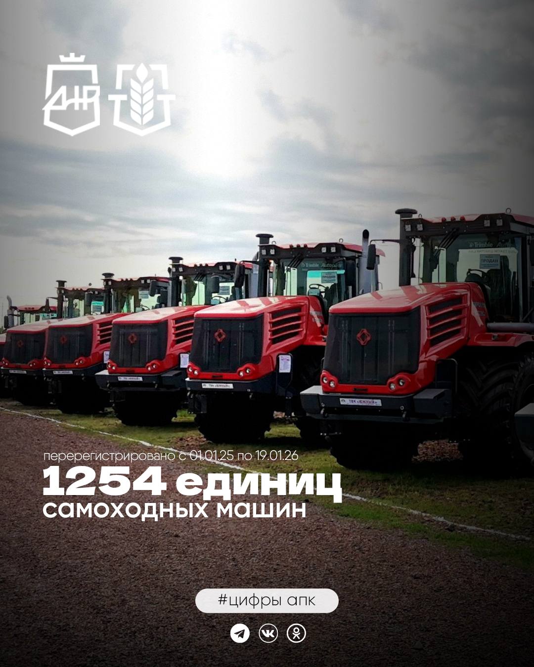За период с 1 января 2025 года по 19 января 2026 года в органах Гостехнадзора зарегистрировано 1254 единицы самоходных машин в сфере АПК.