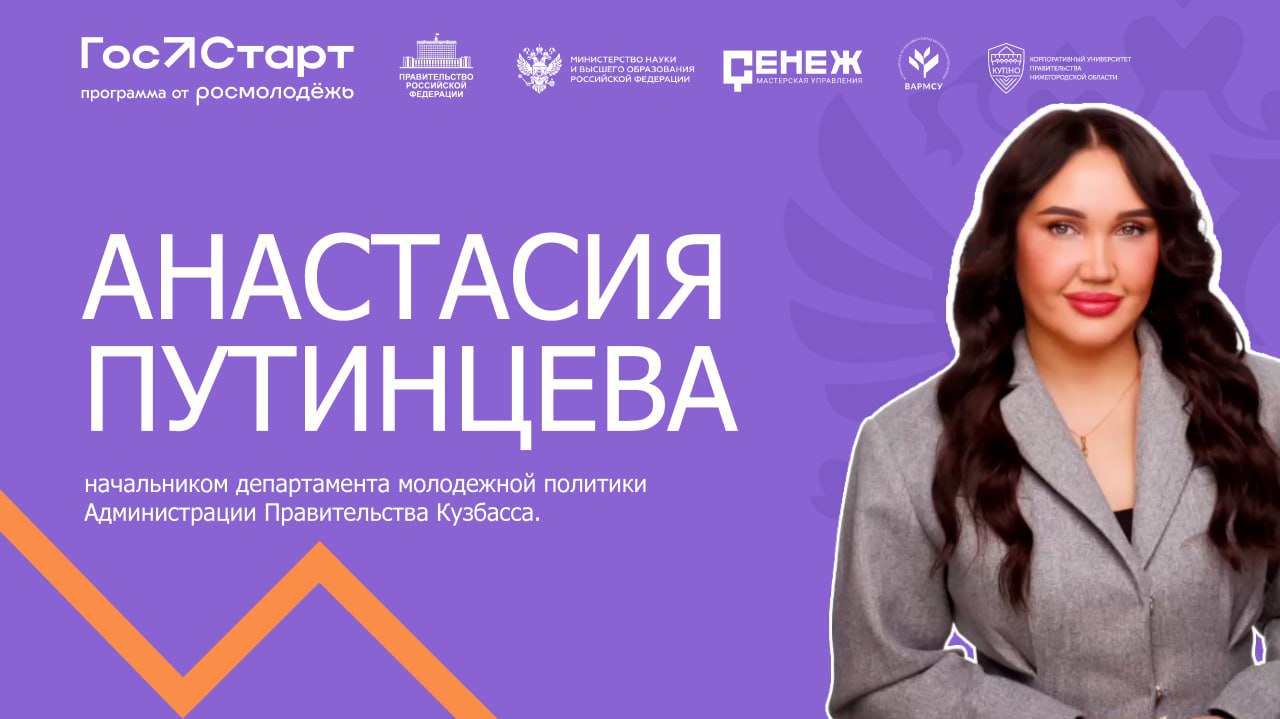 22 января в рамках проекта «ГосСтарт. Диалог» в онлайн формате состоится встреча с Анастасией Владимировной Путинцевой, начальником департамента молодежной политики Администрации Правительства Кузбасса.