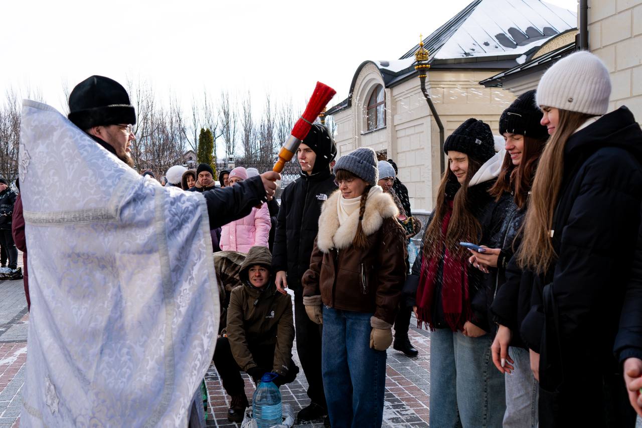 В этот день в соборе не только читали молитвы, но и провели чин великого освящения воды. После праздничной литургии священник окропил ребят и всех прихожан святой водой.