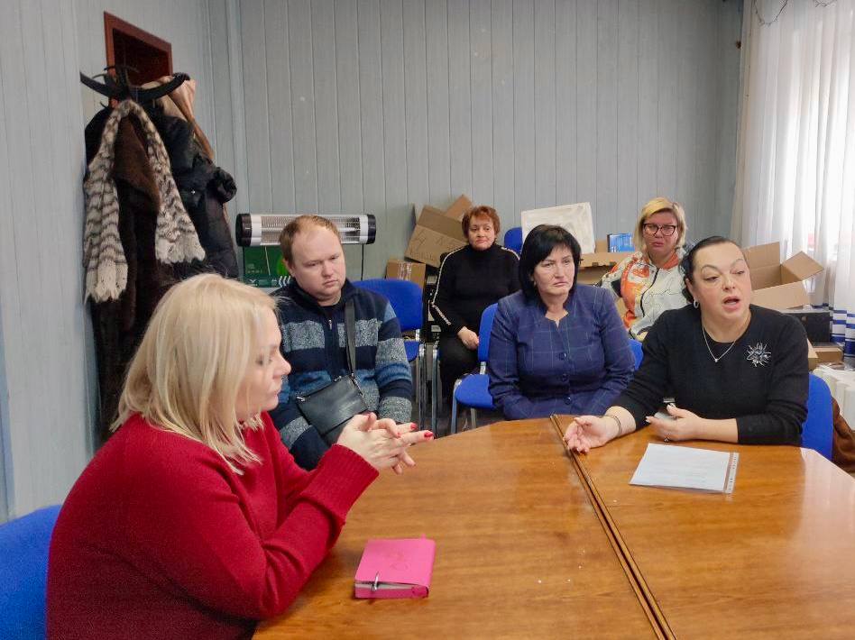 Первый заместитель руководителя Управы Буденновского внутригородского района Администрации городского округа Донецк Елена Булавицкая совместно депутатом Народного Совета Донецкой Народной Республики Ольгой Арутиновой и депутатом Донецкого городского совета Ириной Бениаминовой провела встречу с трудовым коллективом Муниципального казенного учреждения «Централизованная бухгалтерия учреждений образования Буденновского района г.о. Донецк»
