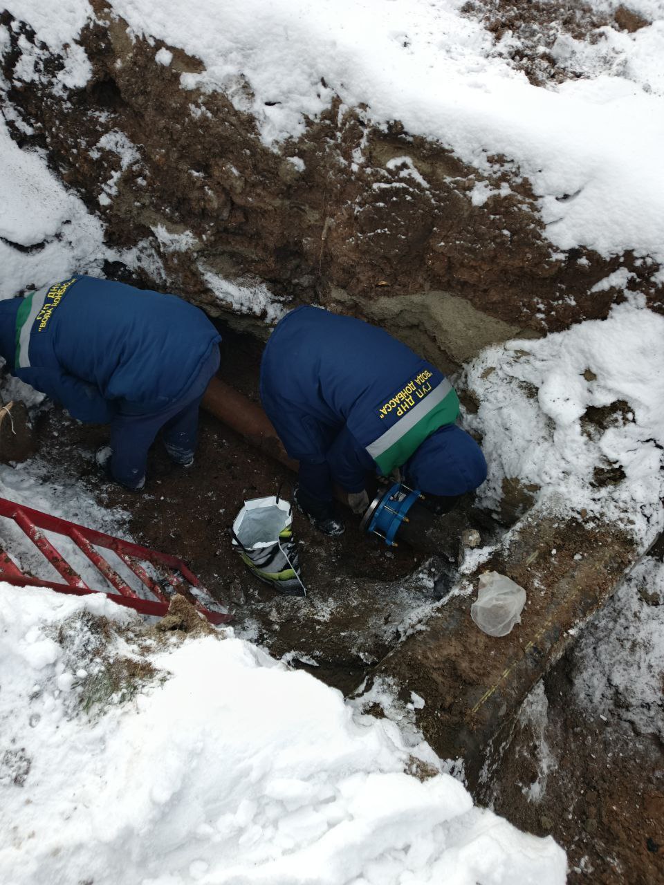 выполнен ремонт канализационного напорного коллектора диаметром 150 мм в пгт. Мирное.