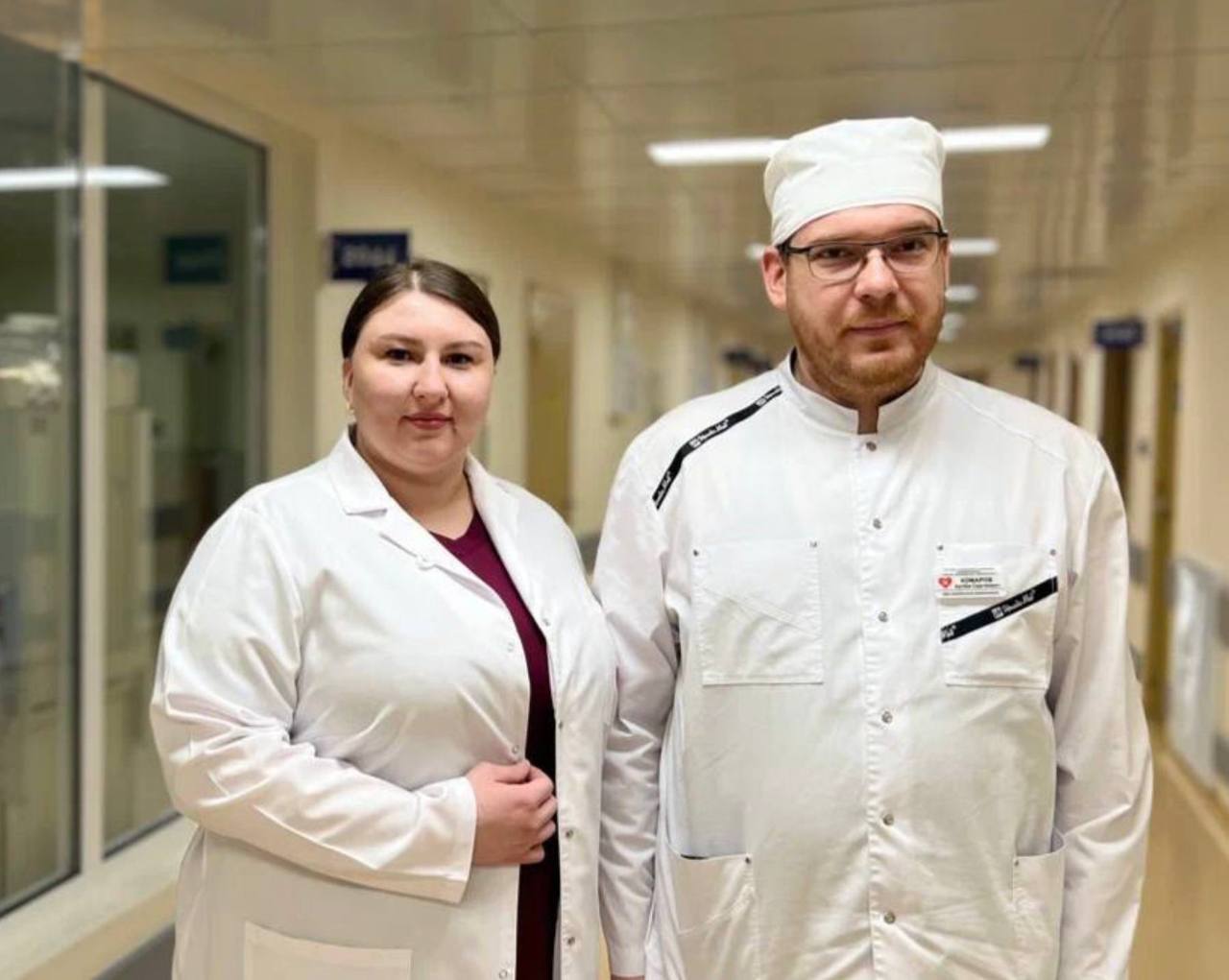 Анестезиолог-реаниматолог Артём Комаров и медицинская сестра-анестезист Татьяна Красулина обмениваются опытом с коллегами, помогают во время проведения плановых и экстренных операций, а также раненым военнослужащим.