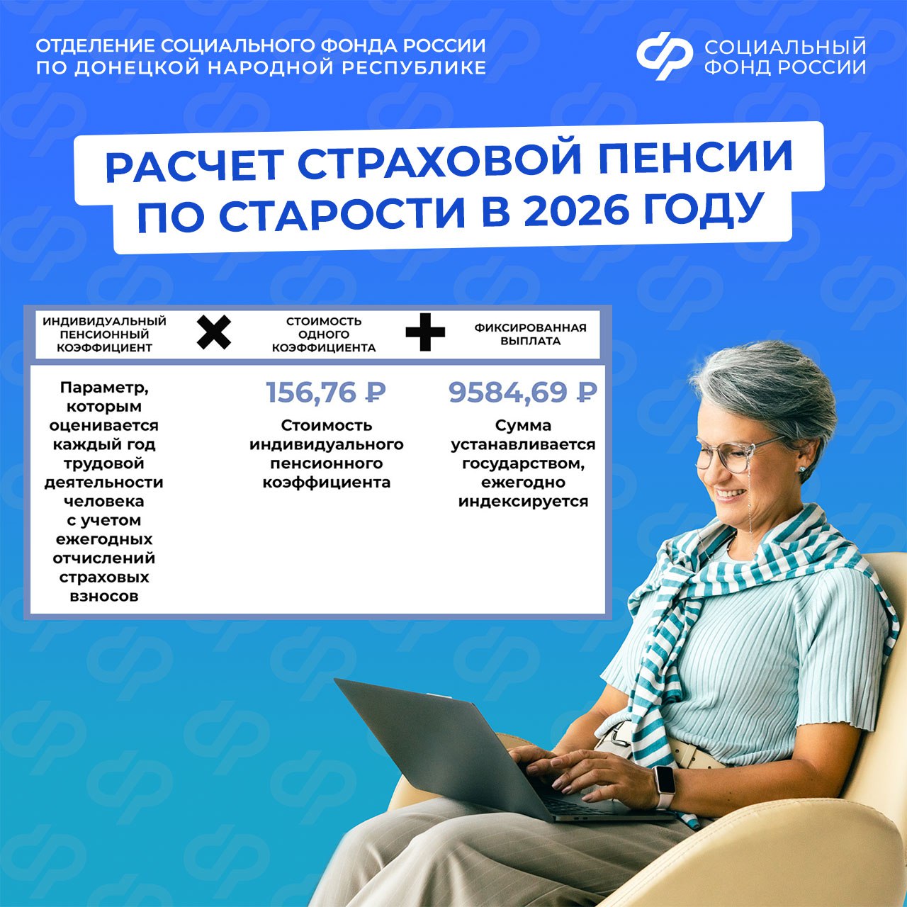 Расчет страховой пенсии в 2026 году осуществляется по формуле: