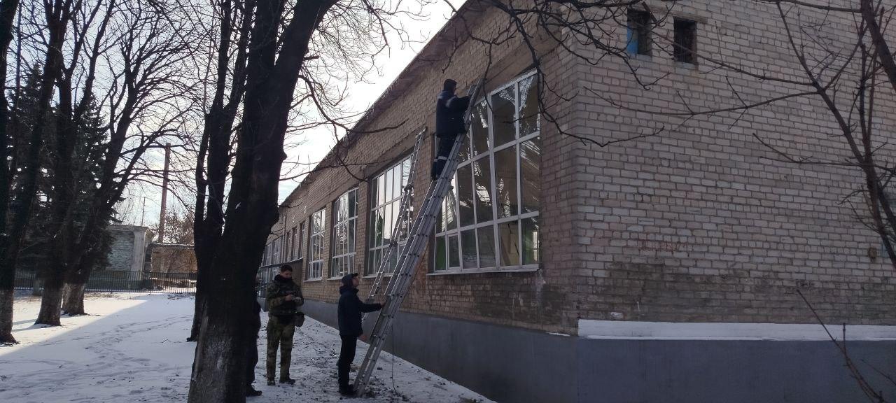 Аварийно-восстановительная бригада региона-шефа провела восстановление оконного блока в целях создания теплового контура в школе № 5.