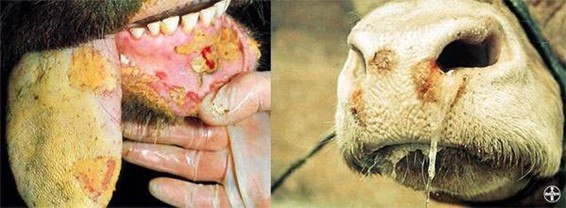 - образование у животных различной величины пузырьков и эрозий на деснах, губах, сосках, вымени и межкопытной щели. Больные животные немедленно изолируются, об их появлении сообщается ветеринарному работнику.