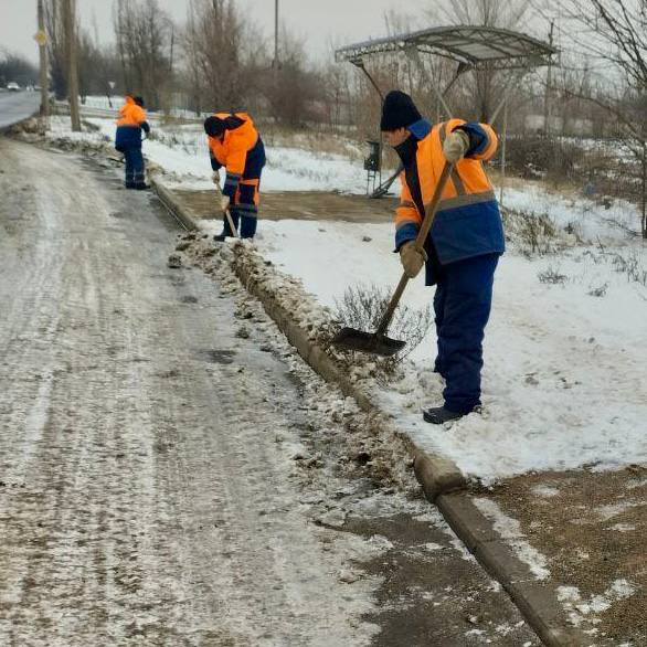 Расчистка от снега прибордюрного камня, уборка снега и мусора на остановочных павильонах по улицам 230-й Стрелковой дивизии, Октября и Данилевского.