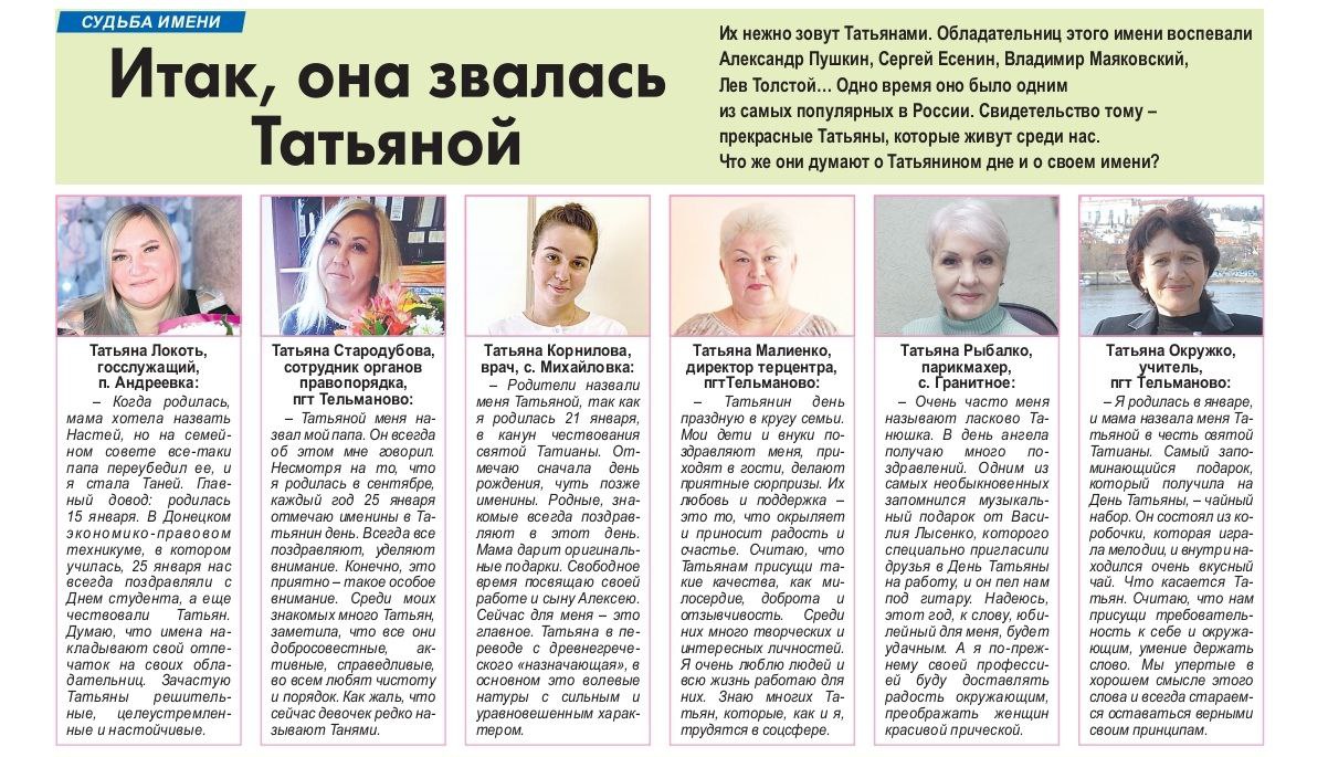 Рассказывать о наших землячках с прекрасным именем Татьяна стало доброй январской традицией