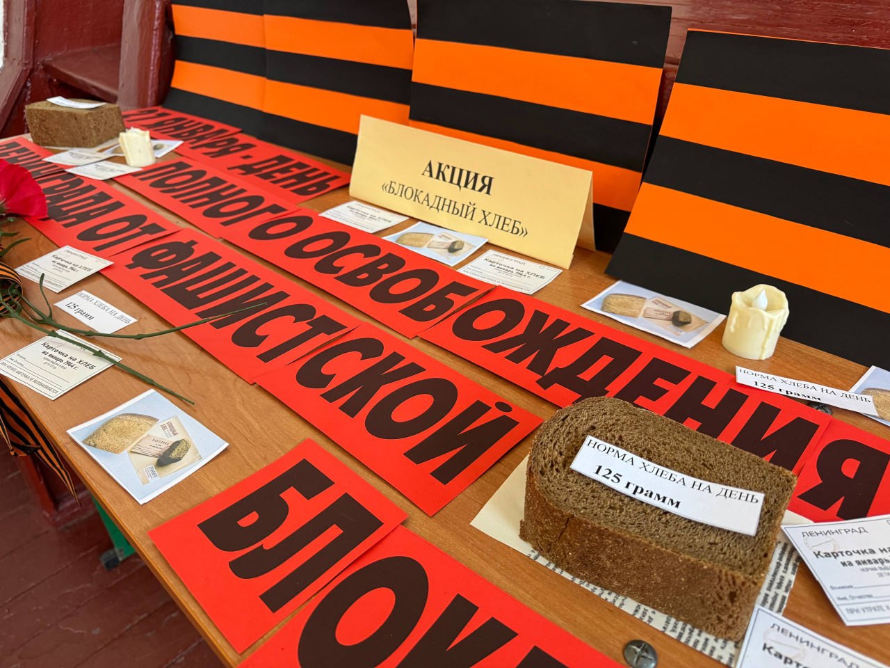 Особое внимание было уделено акции «Блокадный хлеб». Её участники смогли ощутить тяжесть и ценность крошечного кусочка хлеба весом всего лишь 125 граммов — именно столько выдавалось жителям осаждённого города в самые трудные времена блокады.