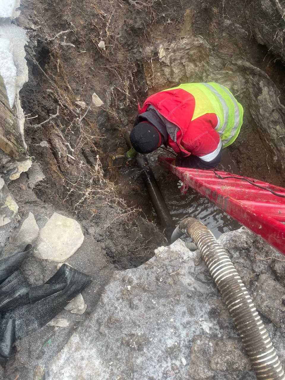 В ходе работ специалисты выполнили разработку котлована, демонтаж хомута, водоотведение, зачистку вручную, изготовление и монтаж компенсатора, засыпку и планировку грунта.