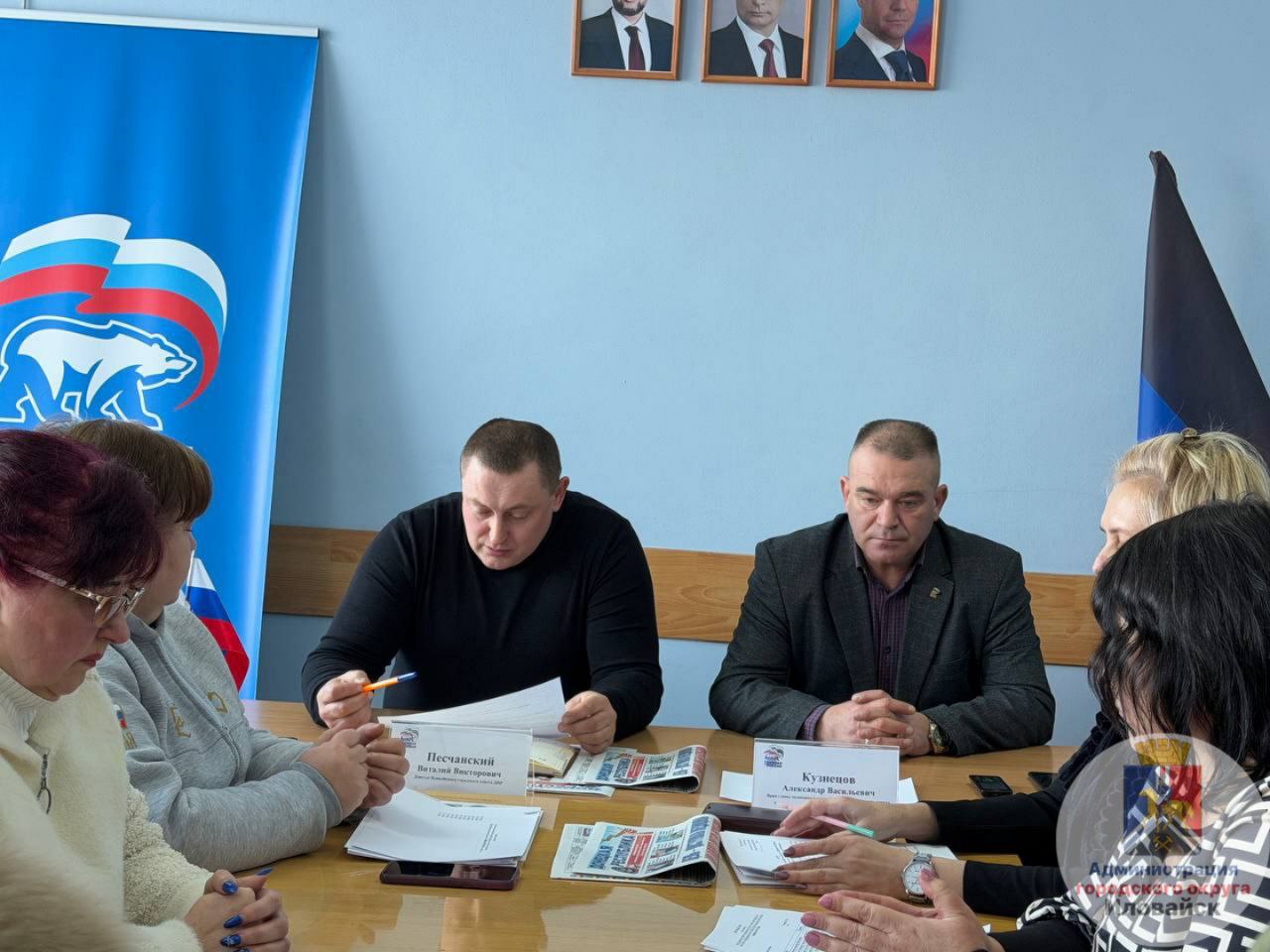Врио Секретаря местного отделения Всероссийской политической партии "Единая Россия" Александр Кузнецов провёл заседание местного политсовета. На заседании присутствовал председатель Иловайского городского совета Виталий Песчанский,а также члены политсовета.
