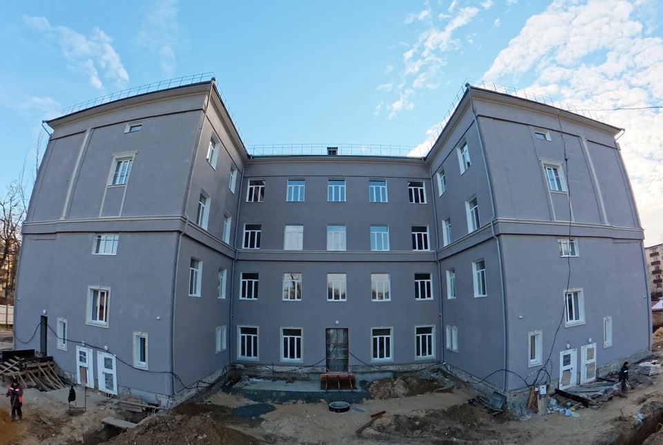 Строители уже восстановили и усилили конструктив здания, заменили кровлю и окна, ведут устройство новых инженерных систем.