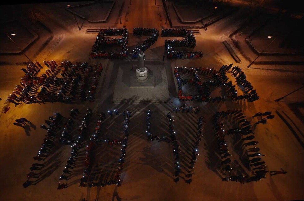 В финале участники выстроились в форме числа 872 — это количество блокадных дней, пережитых городом.
