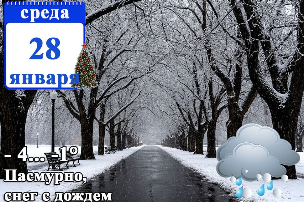 28 января в Республике ожидаются ночью местами снег, ледяной дождь, в первой половине дня туман, гололедно-изморозевые отложения, на дорогах снежный накат, гололедица в ДНР, по акватории Азовского моря ночью мокрый снег, ледяной дождь, утром туман, ветер до 14 м/с.