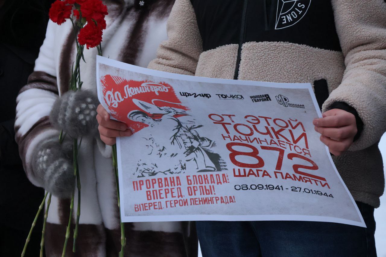 Активисты прошли 872 шага от молодёжного пространства «Точка» до памятника в Сквере Славы «Вечный огонь», где возложили цветы в знак скорби. Также на площади была организована выставка о Блокаде Ленинграда, показывающая ужасы голодной войны и столы с кусочками хлеба в определенной граммовке и карточками на него.