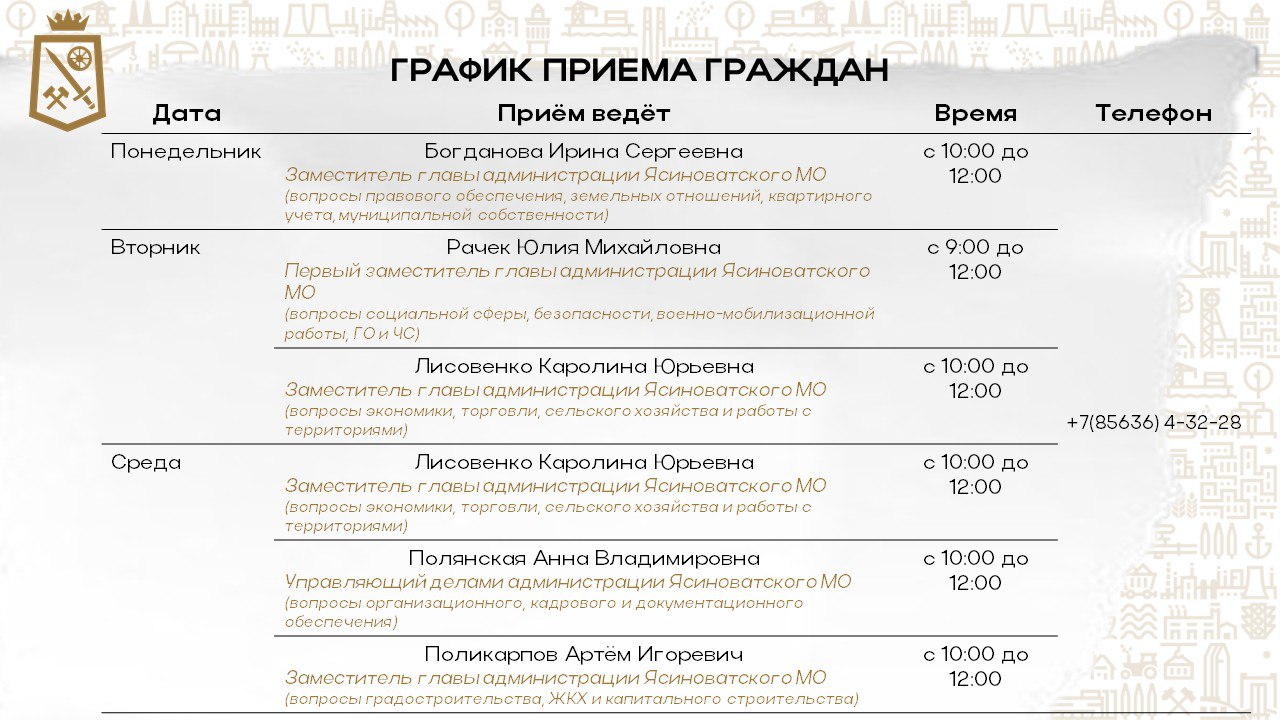 График личных приемов граждан в администрации Ясиноватского муниципального округа