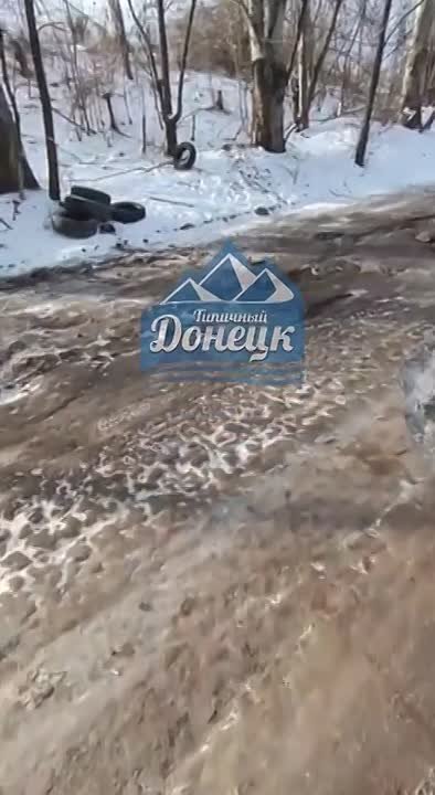 В Калининском районе столицы ДНР вода из прорванного водопровода круглосуточно заливает асфальт.