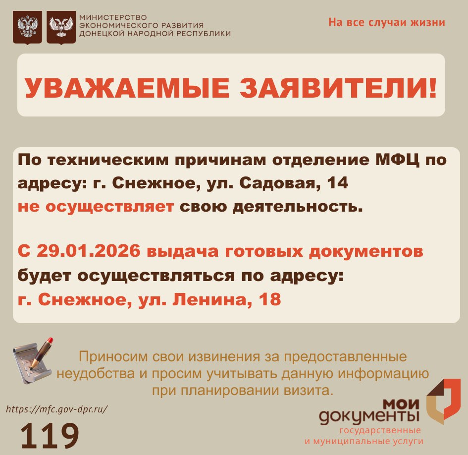 О возобновлении работы отделения МФЦДНРбудет сообщено дополнительно.